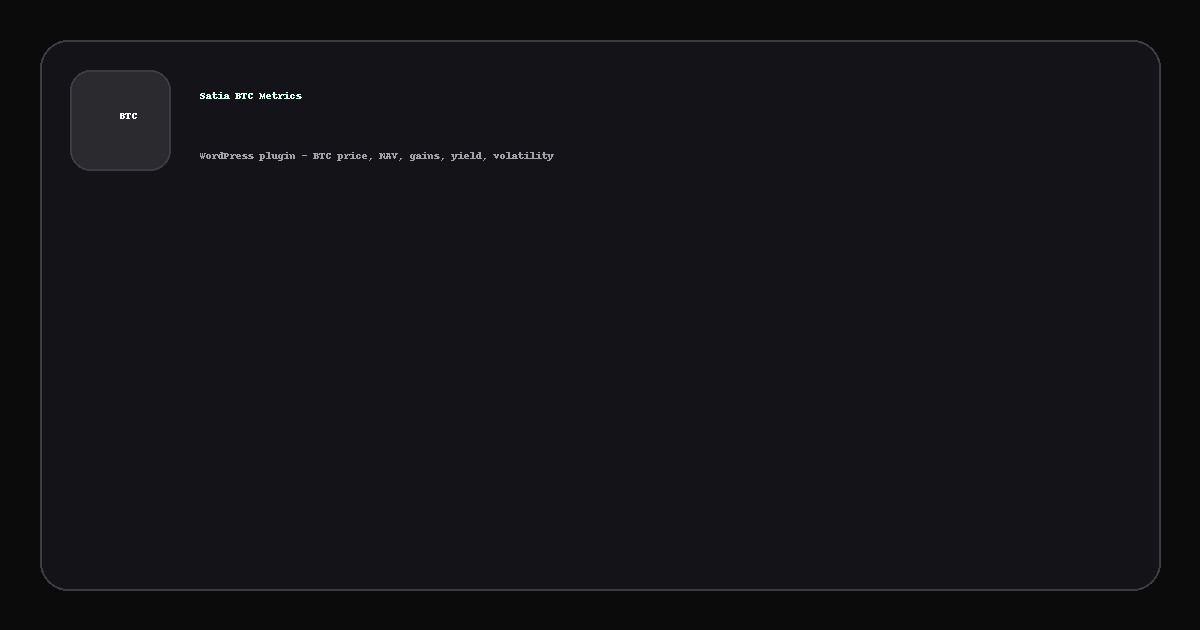 A lightweight WordPress plugin that outputs text-only shortcodes for Bitcoin price, NAV, gains, yield (YTD/QTD/Annual/Locked), and volatility (HV/IV). Style everything with your own theme.